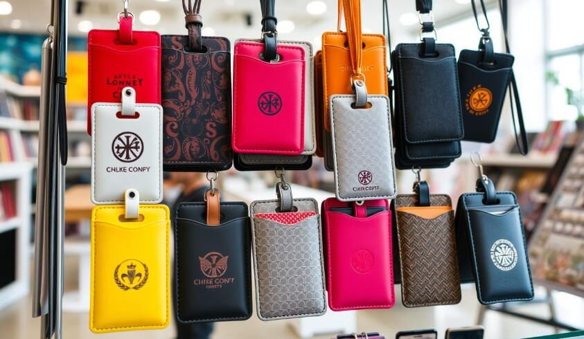 Consider the size of the logo too. For adhesive holders, small logos work best, keeping the design clean and unobtrusive. On larger wallet-style holders, you have more flexibility with the logo’s dimensions and placement but remember – simplicity and visibility are key.
